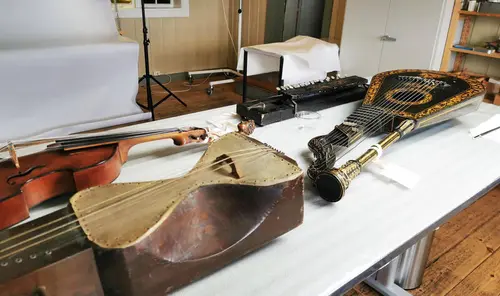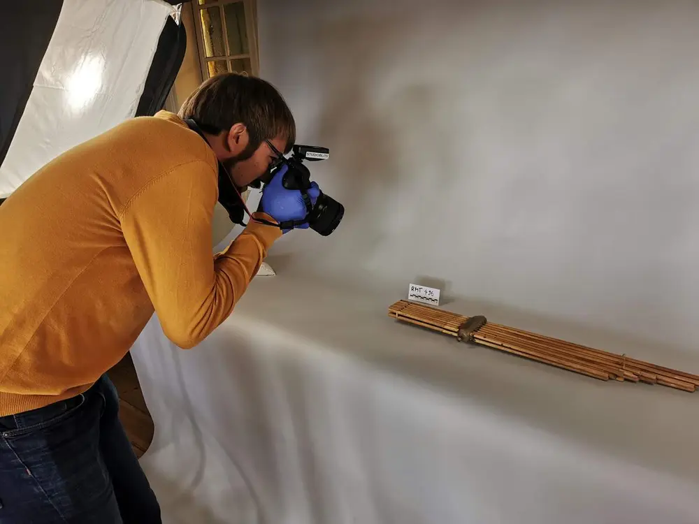 Konservator Sveinung Søyland Moen fotograferer et munnorgel av bambus, og forklarer at det er en tidlig forløper til trekkspillet. Tekst og bilder er åpent tilgjengelig i Digitalt museum (se nedenfor).