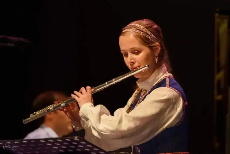 FLØYTE: Gjennom musikkstykket «A Day in the Life of a Flute» viser Andrea hvor allsidig instrumentet er. Vi får bli med en dag i livet til fløyta, fra vekkerklokka via morgengymnastikk, shopping og en date, før dagen ender når fløyta skrur av lyset og går til sengs.