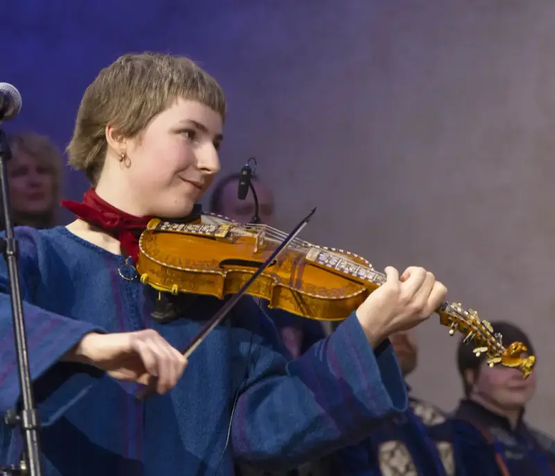 HARDINGFELE: Oda fordyper seg i hardingfelespill fra blant annet Setesdal, og hun har med seg flere instrumenter. Hør om huldrelivet på setrene i Jotunheimen og om spelemenn som spiller seg fra sans og samling! I utstillinga kan du også studere Jaastadfela, Norges eldste hardingfele.