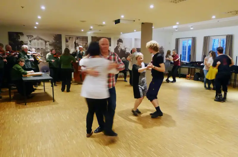 Ringve Musikkmuseum inviterer sammen med Norsk senter for folkemusikk og folkedans til dansefest med trøndersk gammeldans og swingmusikk. Her får du danse både swing, tango, foxtrot, pols, polka, reinlender, vals og annet.