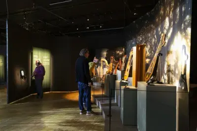 I denne utstillingen har vi funnet fram harpeinstrumenter i alle størrelser og former for å fortelle evigaktuelle historier om mennesket og musikken. Vi lover deg unike instrumenter, fengslende historier og ting å både utforske, oppleve og gruble på!