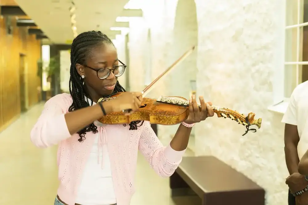 Barn i alle aldre kan bli med på spennende aktiviteter i utstillingene. Utforsk aktivitetsheftet og tegnebordet, eller spill på harper og andre instrumenter på museet.