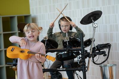 Barn i alle aldre kan bli med på spennende aktiviteter i utstillingene. Utforsk aktivitetsheftet og tegnebordet, eller spill på harper og andre instrumenter på museet.