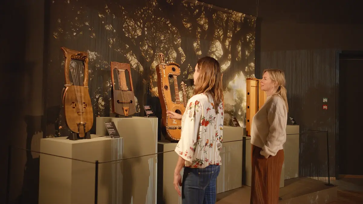 Barn i alle aldre kan bli med på spennende aktiviteter i utstillingene. Utforsk aktivitetsheftet og tegnebordet, eller spill på harper og andre instrumenter på museet.