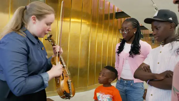 Barn i alle aldre kan bli med på spennende aktiviteter i utstillingene. Utforsk aktivitetsheftet og tegnebordet, eller spill på harper og andre instrumenter på museet.