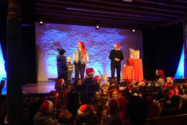 Innendørs finner du også tegne- og malekroken og sjokoladeverkstedet. Bli med opp på scenen i Konsertsalen og prøv ulike sorter instrumenter! I Victoriasalen har vi tatt fram de store kjelene til julegrøten for den som er sulten. Her spiller Feetwarmers og sørger for at det varmer helt fra føttene og opp. Rundt omkring spiller Nissekorpset fra Lade skole musikkorps og varmer oss med juletoner.