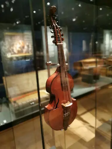 Johann Ullrich Eberle fra Praha er mesteren bak dette instrumentet, bygget året før Leopold Mozarts fiolinskole, i 1755. Den er på størrelse med en bratsj, og spilles på samme måte - altså da bracchio – på armen. Men den har også flere likheter med et annet populært strykeinstrument fra tiden – gamben eller viola da gamba. De har samme flate bunn og skrånende skuldre.