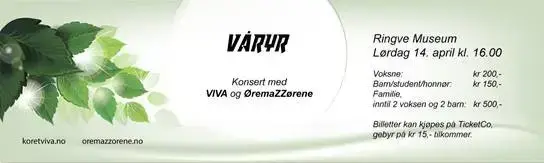 Vi inviterer til konserten "Våryr" i Konsertsalen på RIngve Museum lørdag 14. april kl. 16. Her blir det fuglesang, glass-spill og smektende toner fra begge kor.