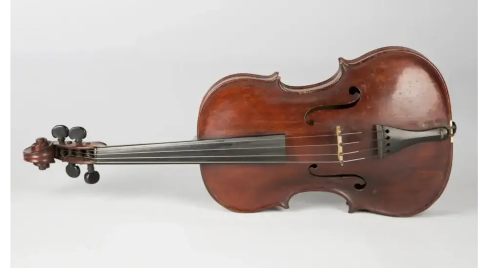 Denne fiolinen er trolig bygget etter Beethovens tid, inntil århundreskiftet 1900, men har flere trekk som var vanlige i hans levetid. Det mest i øyenfallende er kanskje at den ikke har hakestøtte. Man brukte heller ikke skulderpute. Enkelte deler er likevel tilpasset senere tiders klangidealer og spillepraksis. To av strengene er byttet ut med stålstrenger, mens to tarmstrenger gjenstår. Både gripebrettet, strengeholder og endeknapp er laget av ibenholt, mens stemmeskruene er sortmalte. Strengeholderen er her festet til endeknappen med en vanlig streng, der det opprinnelig ville ha vært en tarmstreng.