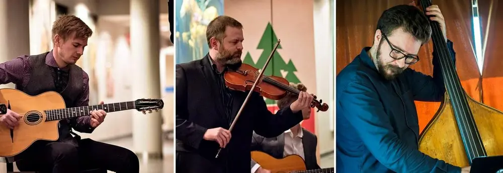 Denne funklende nye stringswingtrioen hyller den franske strengejazzen fra 30- og 40-tallet, og byr blant annet på en håndfull stilriktige klassikere. Samtlige i trioen er godt kjente med sjangeren: Gaute Skrove (folin), Emil Holden Hoem (gitar), David Andersson (kontrabass).