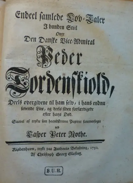 Bildet av sjøhelten Tordenskiold ble folkeeie da den danske historikeren Ove Malling i 1777 utga det patriotiske leseverket Store og gode Handlinger af Danske, Norske og Holstenere. Boka var ment å styrke nasjonalfølelsen blant innbyggerne i det sammensatte dansk-norske riket gjennom historiske forbilder.