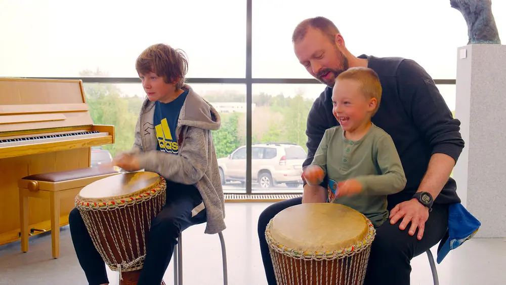 På Ringve Musikkmuseum har vi flere tusen instrumenter, og blant dem finner vi djembene. Djember er trommer som opprinnelig kommer fra Vest-Afrika, og måten de er laget på gjør at en kan få veldig mange ulike lyder ut av ett enkelt instrument. I Trommeti’ får hver elev hver sin djembe og lærer noen grunnleggende rytmer og teknikker for å lage musikk. Her får en utfordre seg på å koordinere hendene mot hodet og en er garantert mestringsfølelse når kabalen endelig går opp. Instruktøren legger opp undervisningen etter nivå og alder, slik at stunden blir så avslappet og hyggelig som mulig.