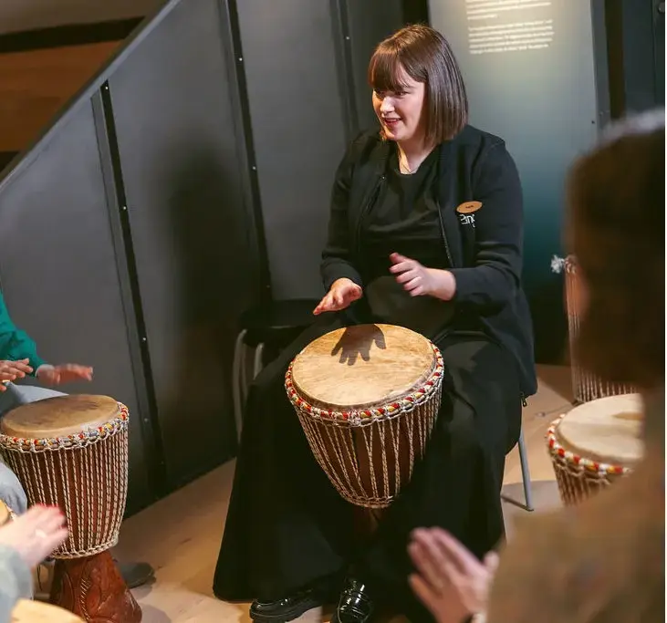 På Ringve Musikkmuseum har vi flere tusen instrumenter, og blant dem finner vi djembene. Djember er trommer som opprinnelig kommer fra Vest-Afrika, og måten de er laget på gjør at en kan få veldig mange ulike lyder ut av ett enkelt instrument. I Trommeti’ får hver elev hver sin djembe og lærer noen grunnleggende rytmer og teknikker for å lage musikk. Her får en utfordre seg på å koordinere hendene mot hodet og en er garantert mestringsfølelse når kabalen endelig går opp. Instruktøren legger opp undervisningen etter nivå og alder, slik at stunden blir så avslappet og hyggelig som mulig.