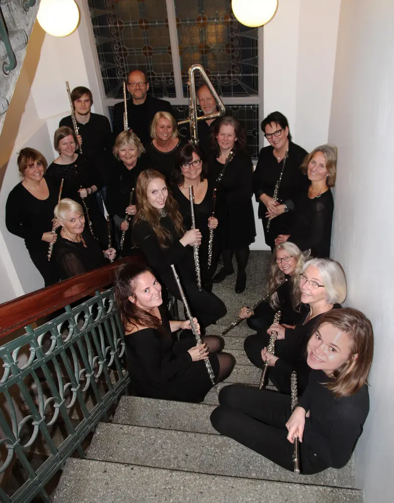 På denne konserten vil de presentere blant annet Cecile Chaminade's Concertino, i et arrangement for solist og fløytekor. To av fløytestudentene ved Institutt for musikk vil spille verker fra sitt eksamensrepertoar, blant annet Berio Sequenza for solo fløyte.